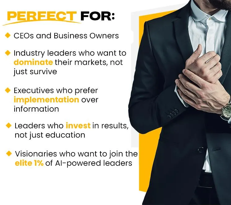This exclusive boardroom experience transforms you from an isolated, traditional CEO into a connected, AI-powered industry leader who possesses strategic advantages unavailable to your competitors.